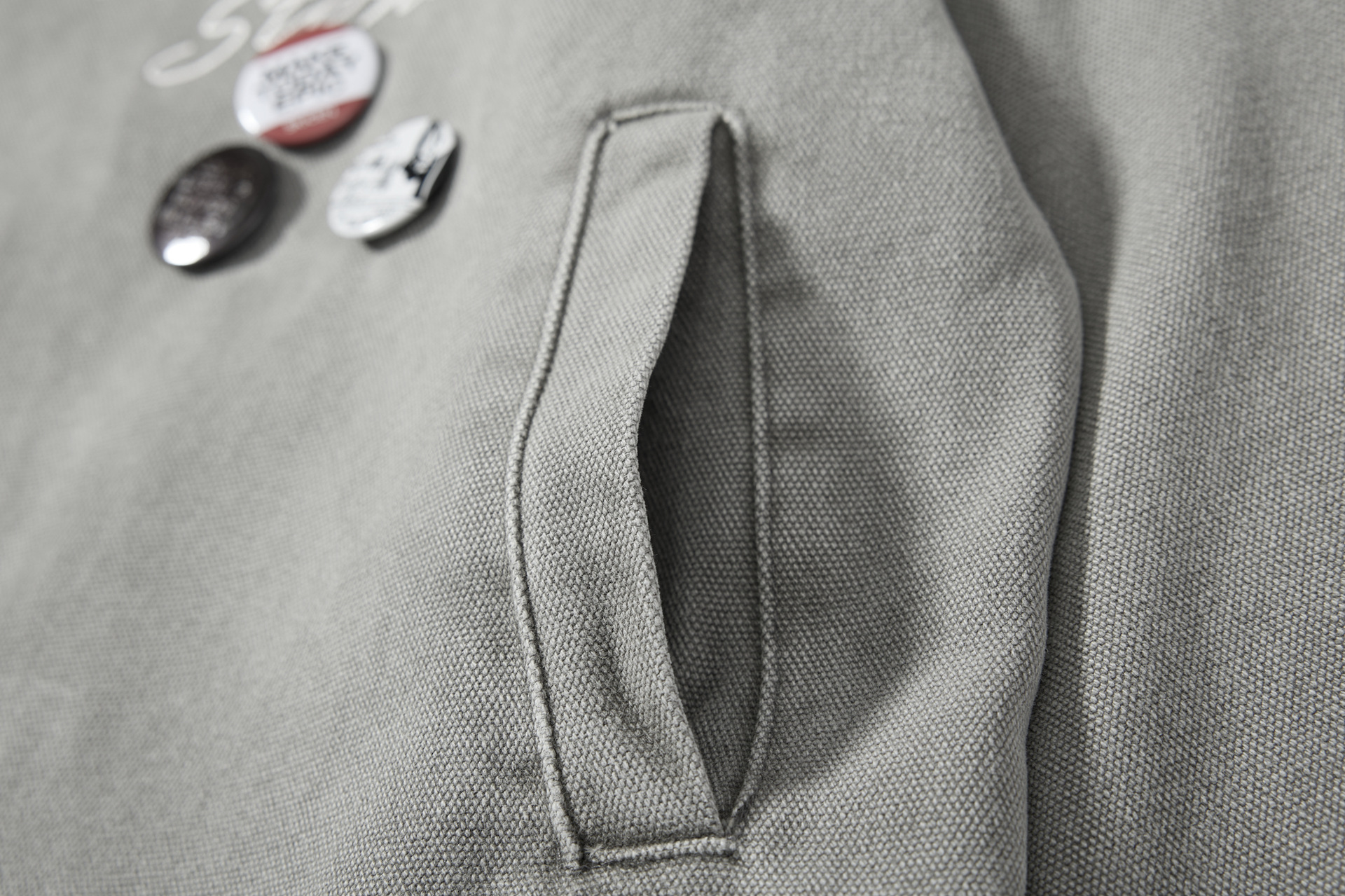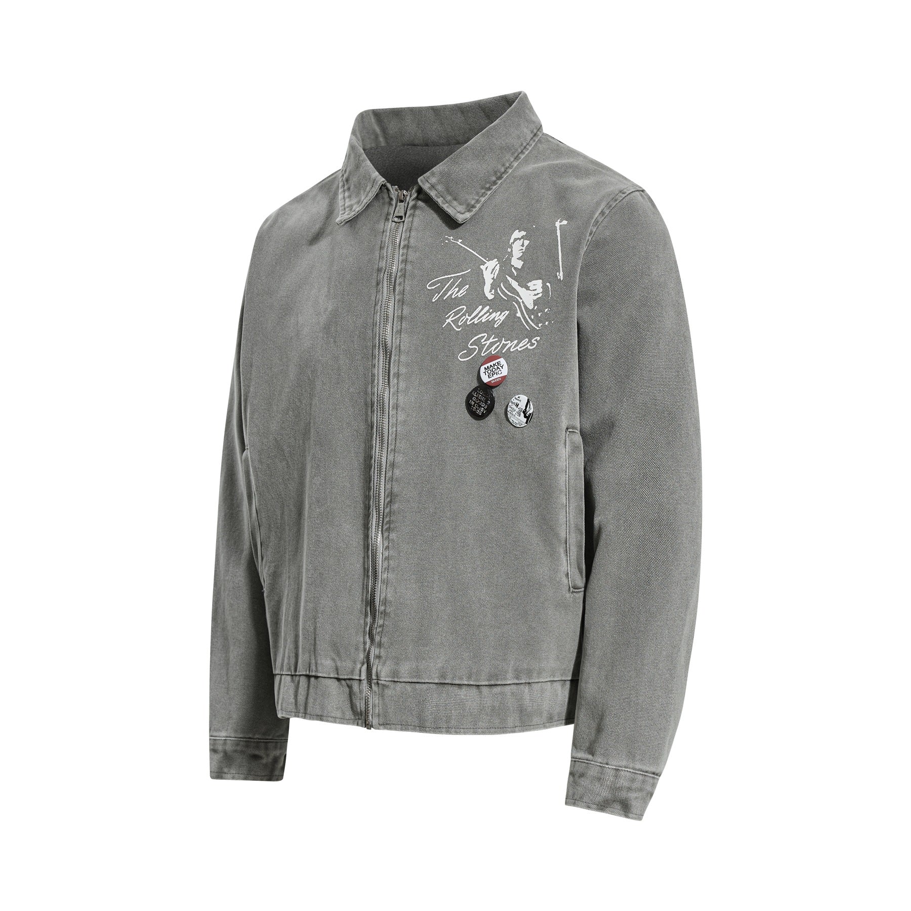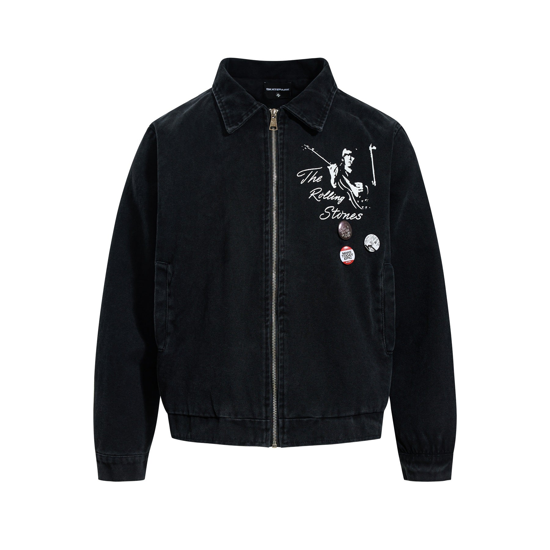 Retro Autumn/Winter Unisex Streetwear Canvas Jacket with Studs, Button Closure and Badge Design for Men