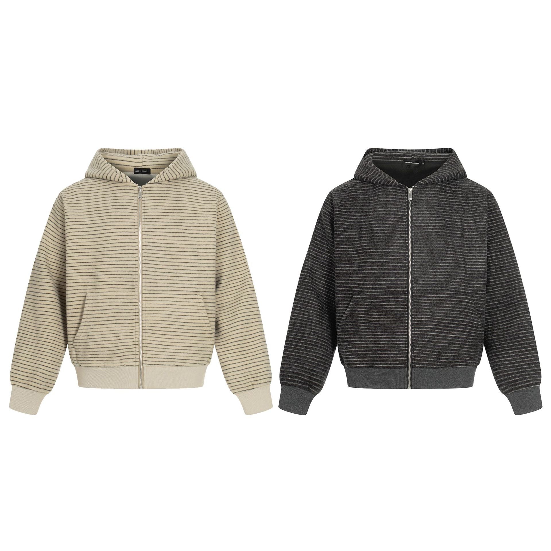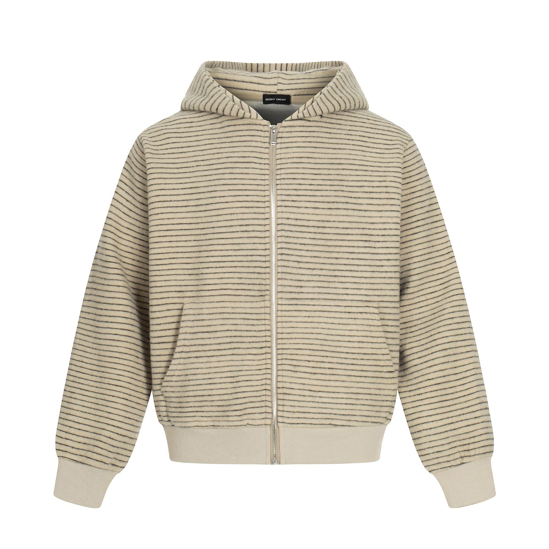 Street Style Unisex Casual Retro Stripe Minimalist Design Short Loose Fit Men's Hooded Cardigan Sweatshirt