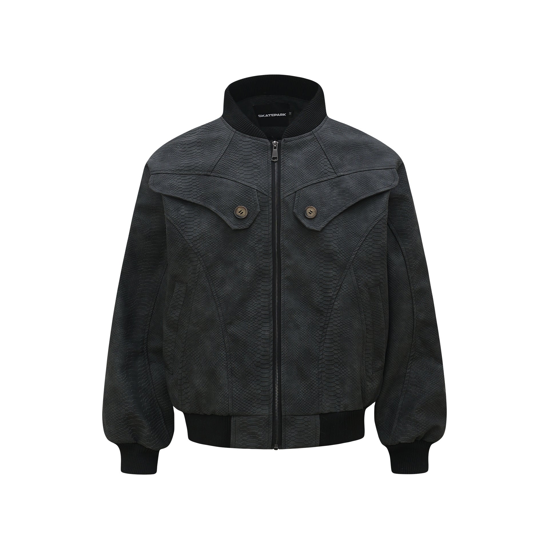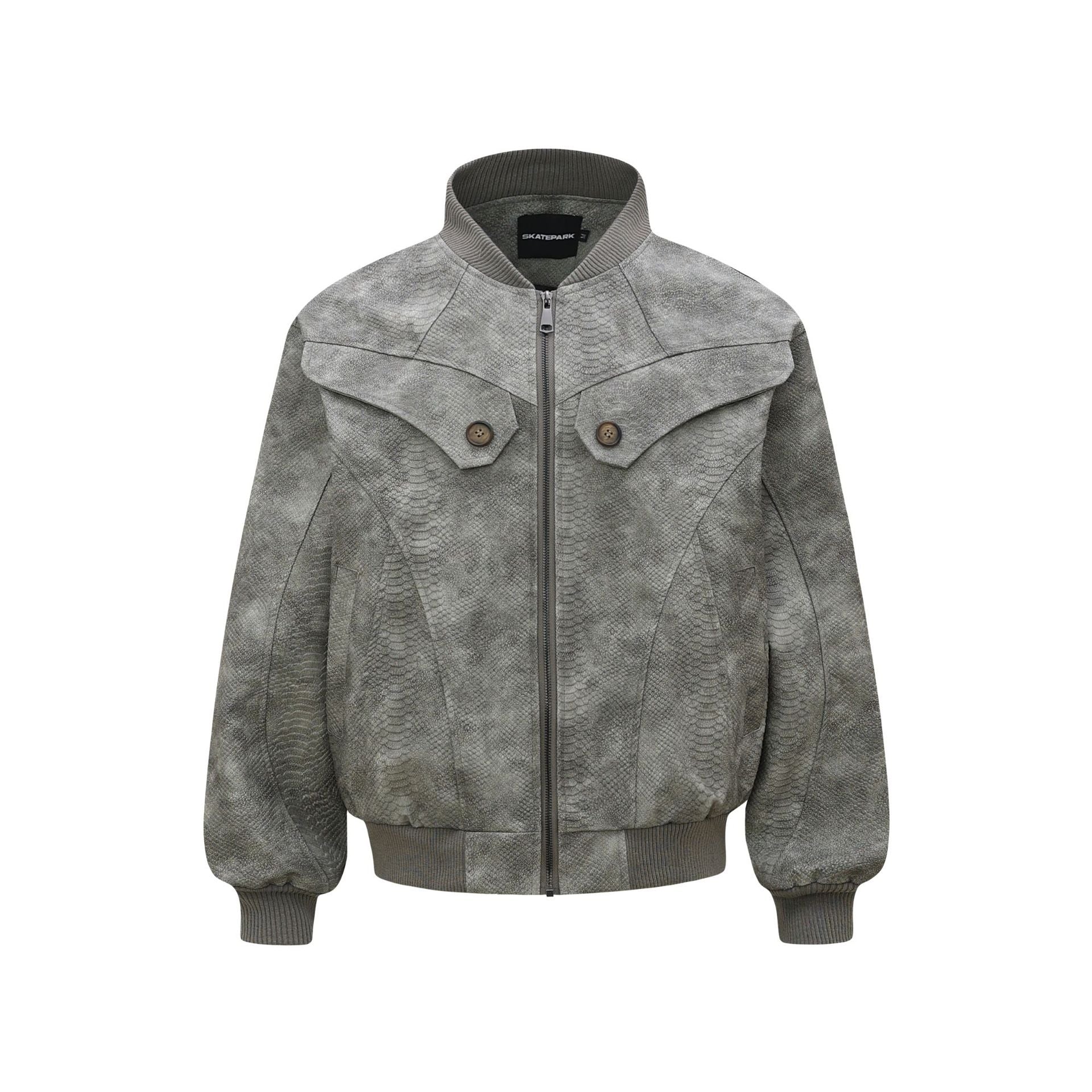 Vintage Unisex Street Style Snake Print Deconstructed Jacket with Metal Snap Design Men's Loose Fit Outerwear